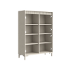 Пространство внутри включает большое количество полок, которые помогают разместить одежду, постельное белье и аксессуары. Сочетание матовых фасадов и текстуры с изящной фрезеровкой добавляет интерьеру индивидуальность. Высокие ножки обеспечивают визуальную легкость мебели.